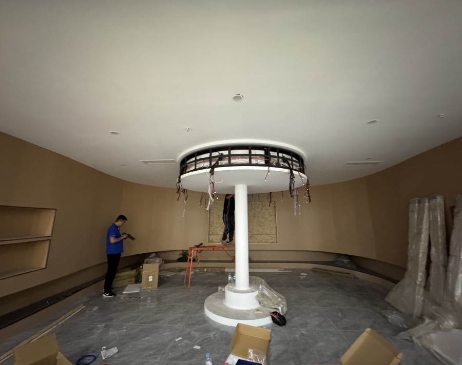 在安装项目中,我司团队全程提供了专业支持。考虑到环形结构的特殊性,前期与客户进行了深入沟通,详细了解其对屏幕尺寸、显示效果、安装位置等方面的要求。结合 P1.86 软模组的特性,制定了周密的安装方案,包括模组的拼接方式、固定方法以及线路的隐藏布置等,以确保屏幕整体的美观度和稳定性。