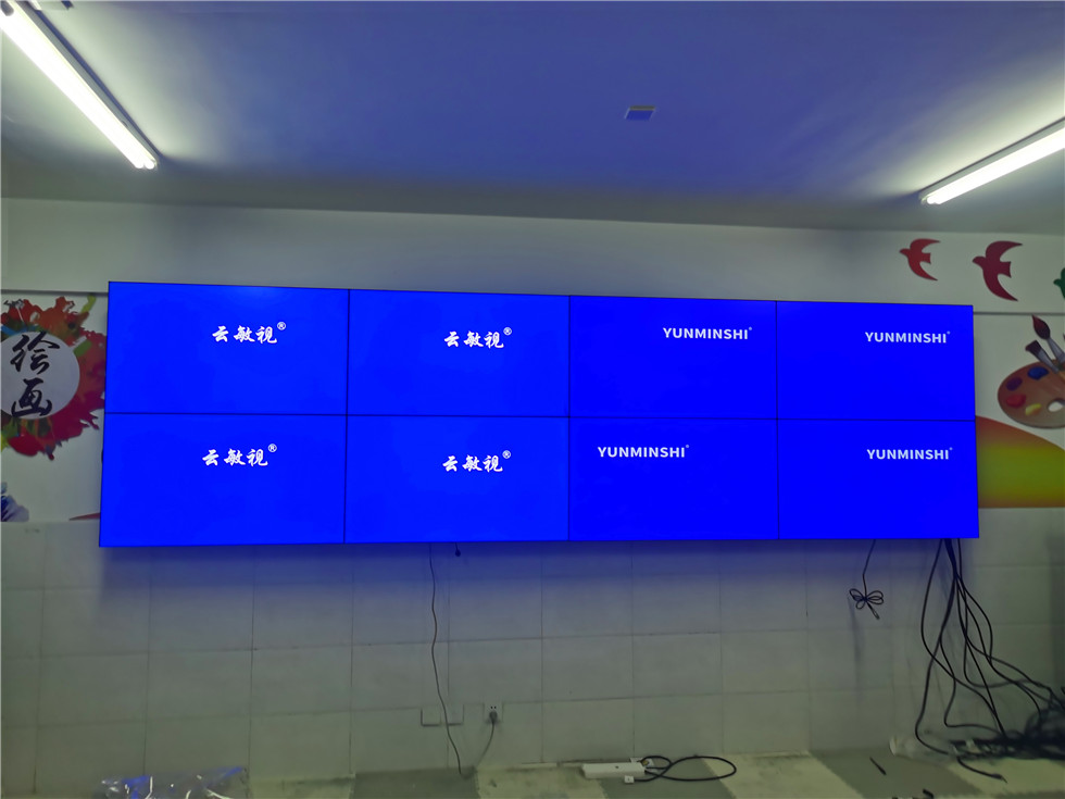 聊城某小学,随着摄像机数量不断增多,监控室原有的云敏视4台46寸3.5mm液晶拼接屏已经满足不了目前的显示需求,于是准备再加装4台云敏视46寸3.5mm液晶拼接屏,大屏前端使用高清线连接硬盘录像机,一对一显示,简单明了。支架采用的是云敏视壁挂支架,云敏视壁挂支架采用焊接分组拼装式设计结构,易运输安装。安装完毕后,新的大屏跟原来的大屏毫无违和感。客户非常满意。