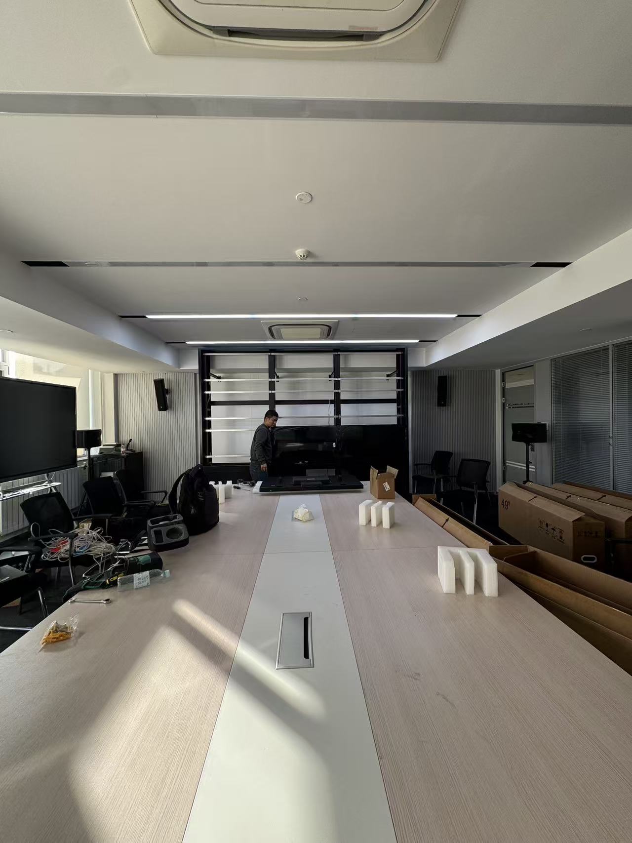 近日,烟台某企业完成会议中心智能化升级,正式启用云敏视 49 寸 3.5mm 超窄边液晶拼接屏系统。该系统采用机柜式安装方案,并配套高清会议摄像头与专业音响设备,全面提升客户洽谈与远程协作效率。