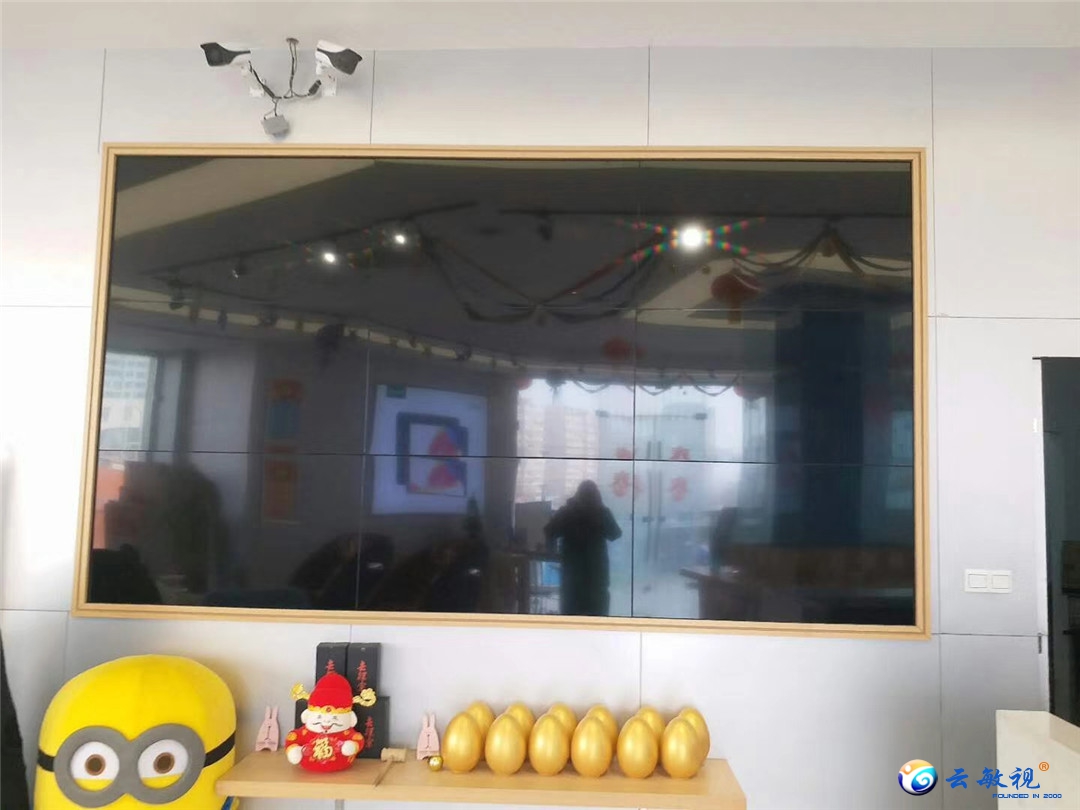 云敏视液晶拼接屏安装完毕,从图片上来看,效果还是可以的,后期我们售后服务跟上,想必客户会获得很好的视觉体验。感恩客户。