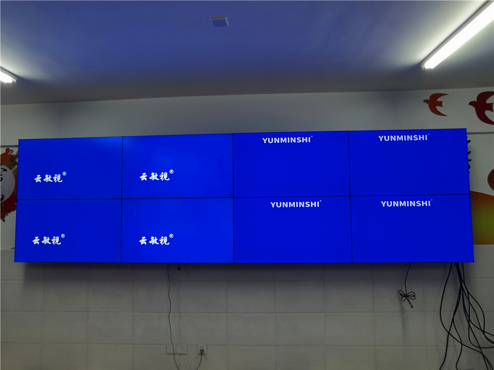 聊城某小学,随着摄像机数量不断增多,监控室原有的云敏视4台46寸3.5mm液晶拼接屏已经满足不了目前的显示需求,于是准备再加装4台云敏视46寸3.5mm液晶拼接屏,大屏前端使用高清线连接硬盘录像机,一对一显示,简单明了。支架采用的是云敏视壁挂支架,云敏视壁挂支架采用焊接分组拼装式设计结构,易运输安装。安装完毕后,新的大屏跟原来的大屏毫无违和感。客户非常满意。
