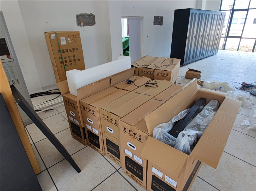 由济南液晶拼接屏知名企业云敏视商用提供产品并安装的济宁某小区监控室云敏视拼接屏安装完毕。