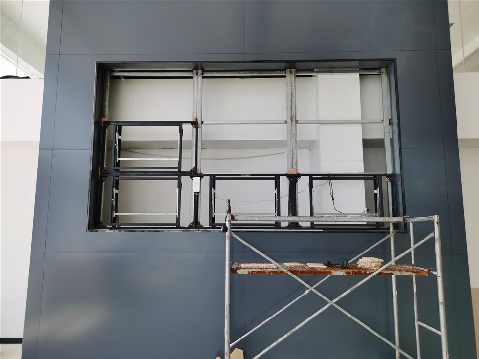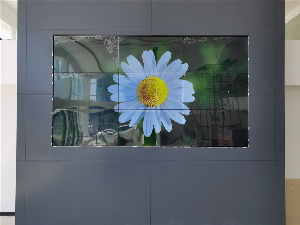 日照某汽车销售公司展厅55寸3.5mm液晶拼接屏9台安装调试完毕